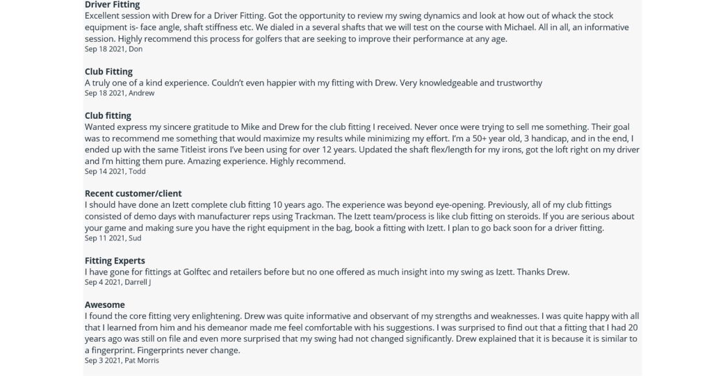 Driver Fitting information